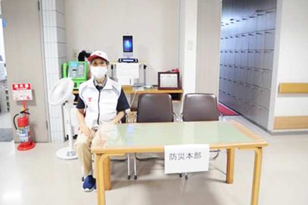 事務所前に防災本部を設け、各部署から情報を防火管理者へ集め対応をしました。