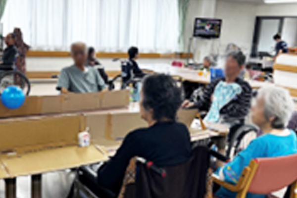 「昔はボーリングの女王だったのよ~」とのご利用者様のお話を受けて、ボーリング大会を行いました。手作りながら本格的!皆様レーンを囲んで、一投毎に嬉々として夢中になられていました。