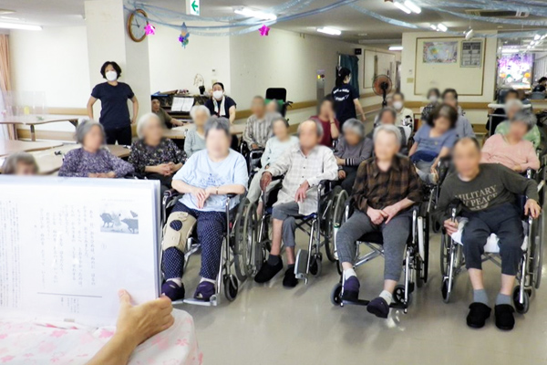 七夕にまつわる内容の紙芝居を鑑賞していただきました。なぜ笹飾りをするの?など興味深くご覧になっていました。そのあとは「風船飛ばしゲーム」でにぎやかに!団扇で風船を思うように動かせるか!?和気あいあいと楽しまれていました。