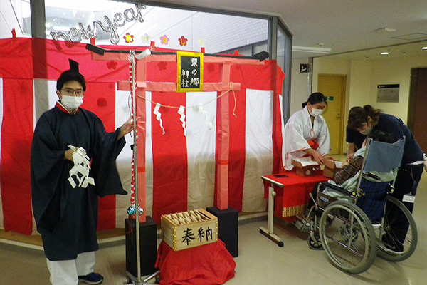 新しい年を迎えるため、毎年恒例の栗詣でを行いました。神主や巫女さんに扮した職員が皆様をご案内し、おみくじも引きました!笑いあり、真剣な祈りありで、新たな始まりに向けて明るい表情の皆様でした。